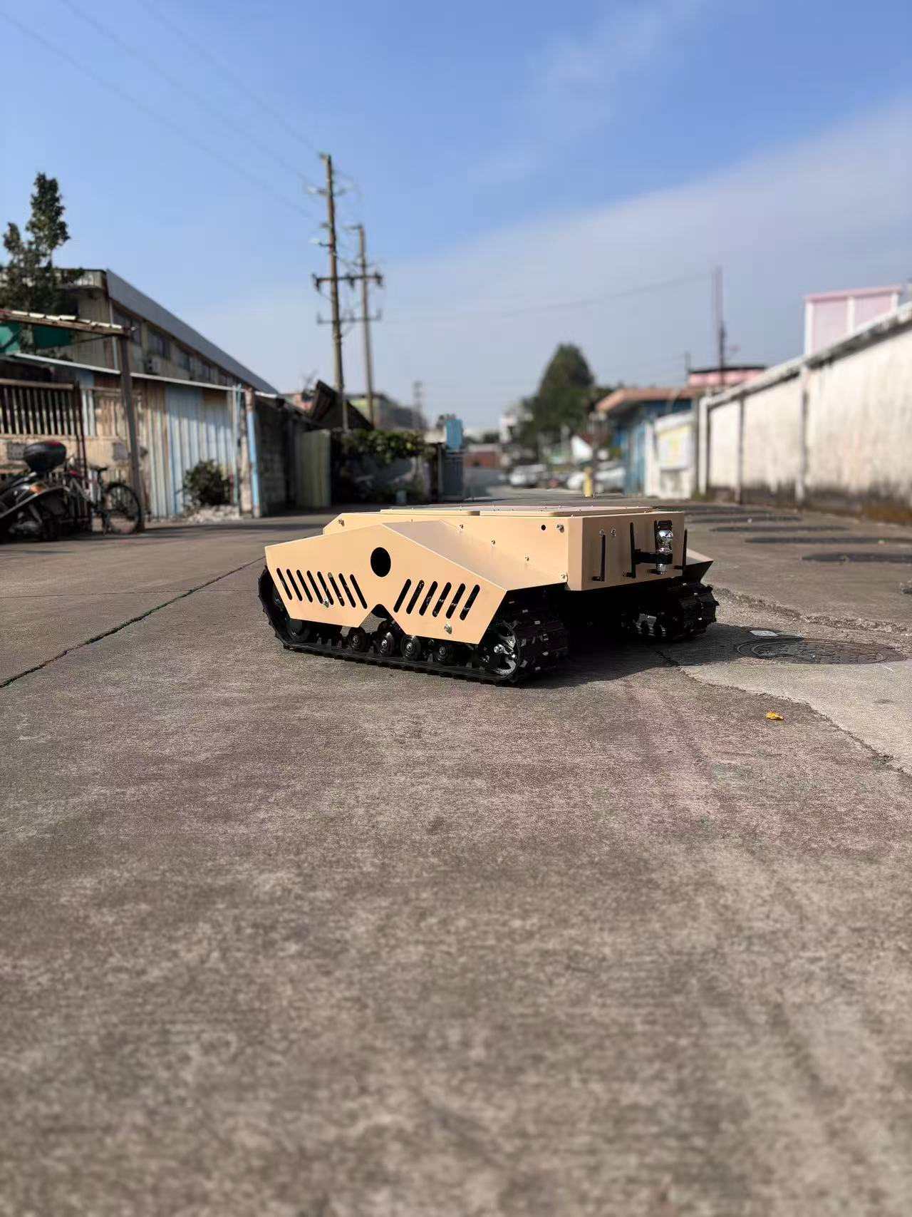 Alimentado por motores duplos de 3 kW de alta qualidade e equipado com esteiras grandes, este veículo é perfeito para transporte em todos os terrenos.